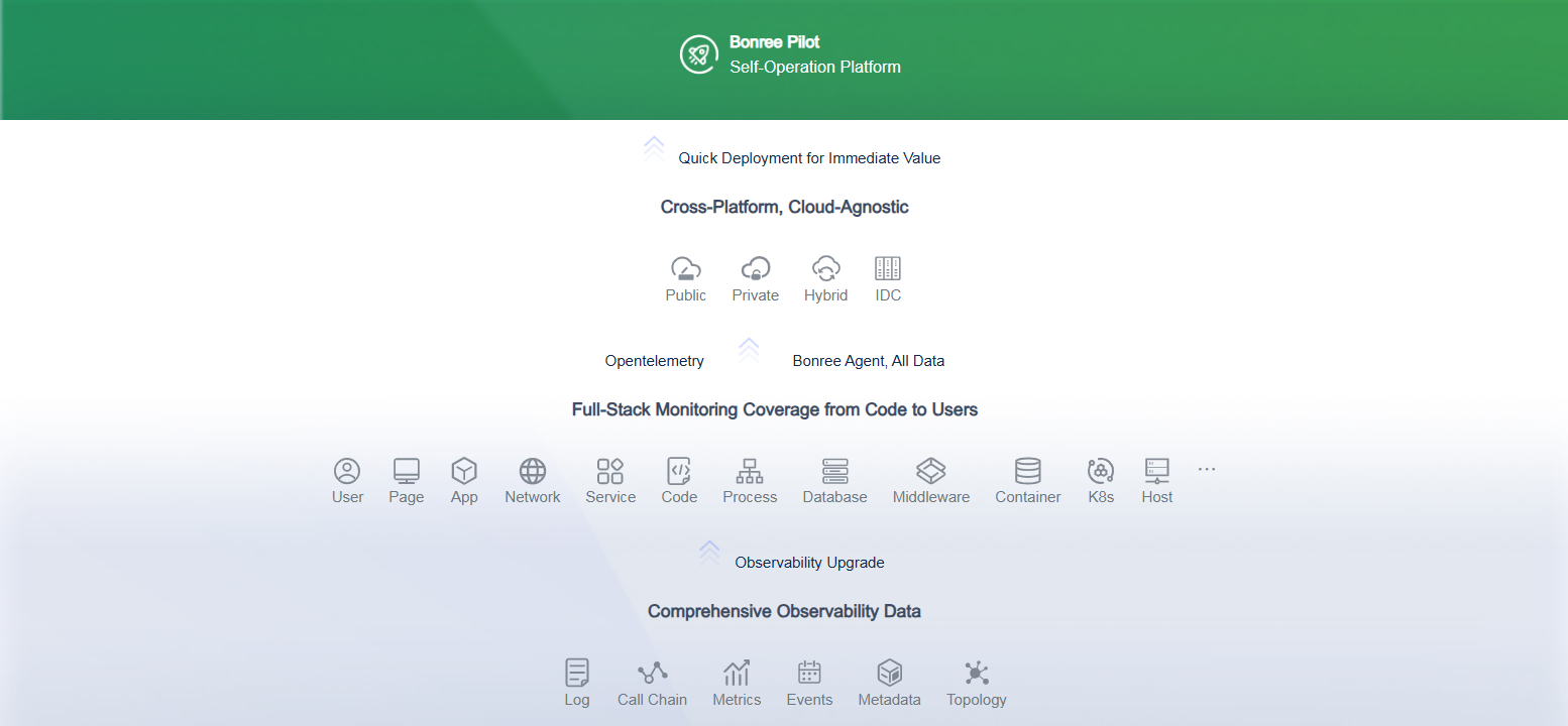Alert Aggregation, Anomaly Detection/Prediction, Root Cause Analysis, Intelligent Insights